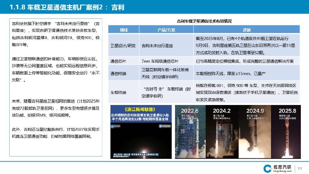 当前,车载卫星通信成为车企角逐的新赛道,多家车企,如吉利、比亚迪、长安汽车等纷纷布局,抢占未来出行的战略高地。