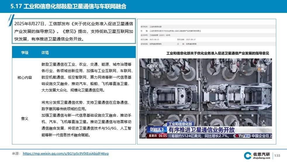 2025年8月27日,工信部印发《关于优化业务准入促进卫星通信产业发展的指导意见》,明确鼓励卫星通信在交通等行业创新应用,加强与车联网等新一代信息基础设施交叉融合,推动汽车直连卫星。这为车载卫星通信的发展注入强劲动力,推动其驶入快车道。